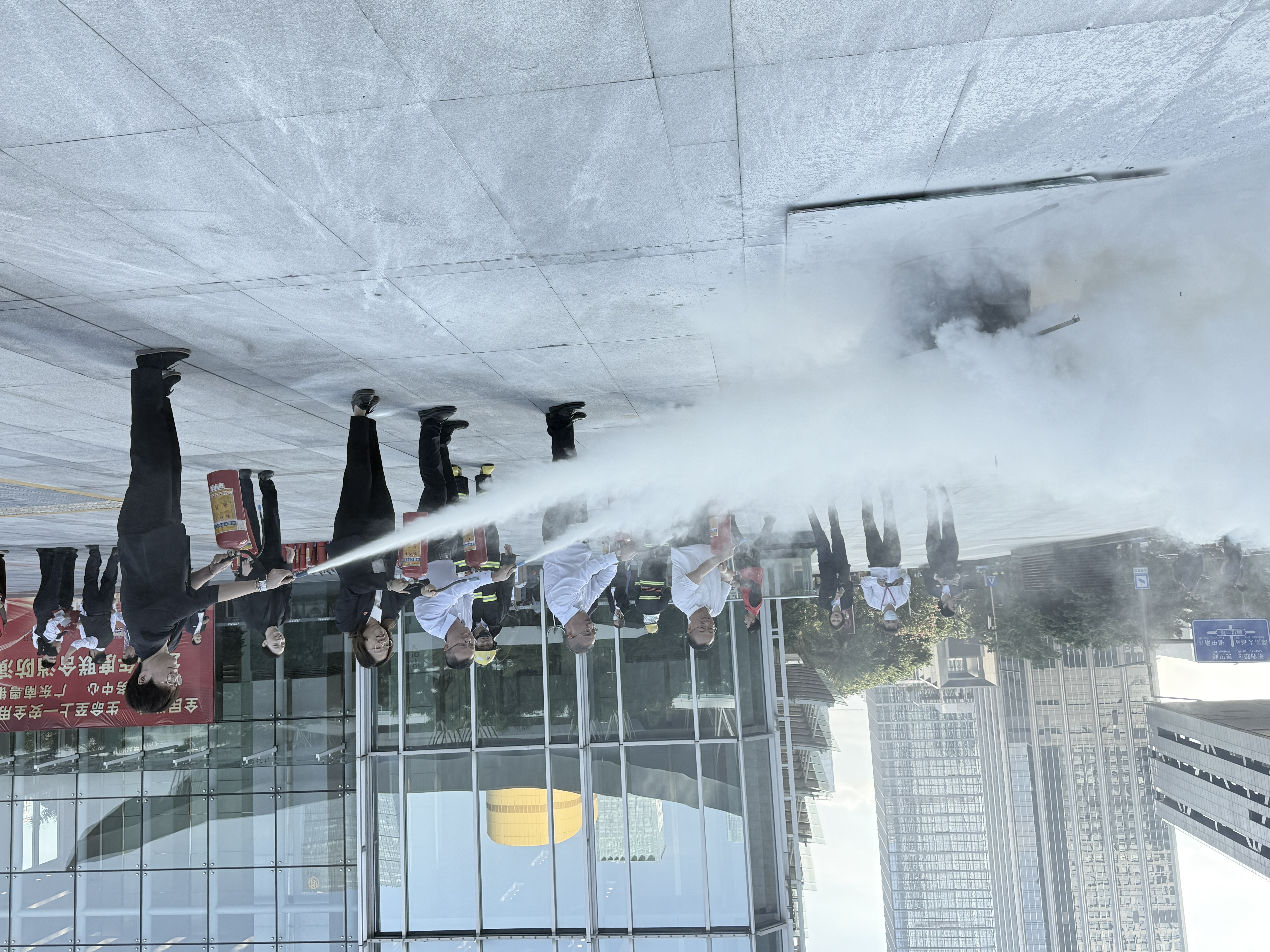 “其实消防员到火场的最重要的事是救人。火灾救援以‘生命至上’为首要原则——消防员到达火场后,会先通过火情侦察判断是否有人员被困,优先开展搜救行动,再根据现场情况组织灭火及风险控制。尤其在人员密集的商务中心、银行网点等场景,“救人第一”是必须优先执行的处置流程。”物业工作人员揭晓答案的同时,拿起手中的喷淋头设备进一步科普,“这不是烟感器,而是喷淋头,学名为闭式洒水喷头。它的作用原理不是通过感知烟雾来释放喷淋水,而是通过感知温度来起作用,当室内温度达到设定阈值,中间的感应装置会受热爆开,它的内部充注乙醚、酯类等易膨胀液体,受热后液体膨胀撑破玻璃球从而触发喷淋灭火,是室内消防安全的‘隐形卫士’。”生动的问答互动,让现场员工瞬间get到实用消防知识,也拉开了本次消防演练的序幕。