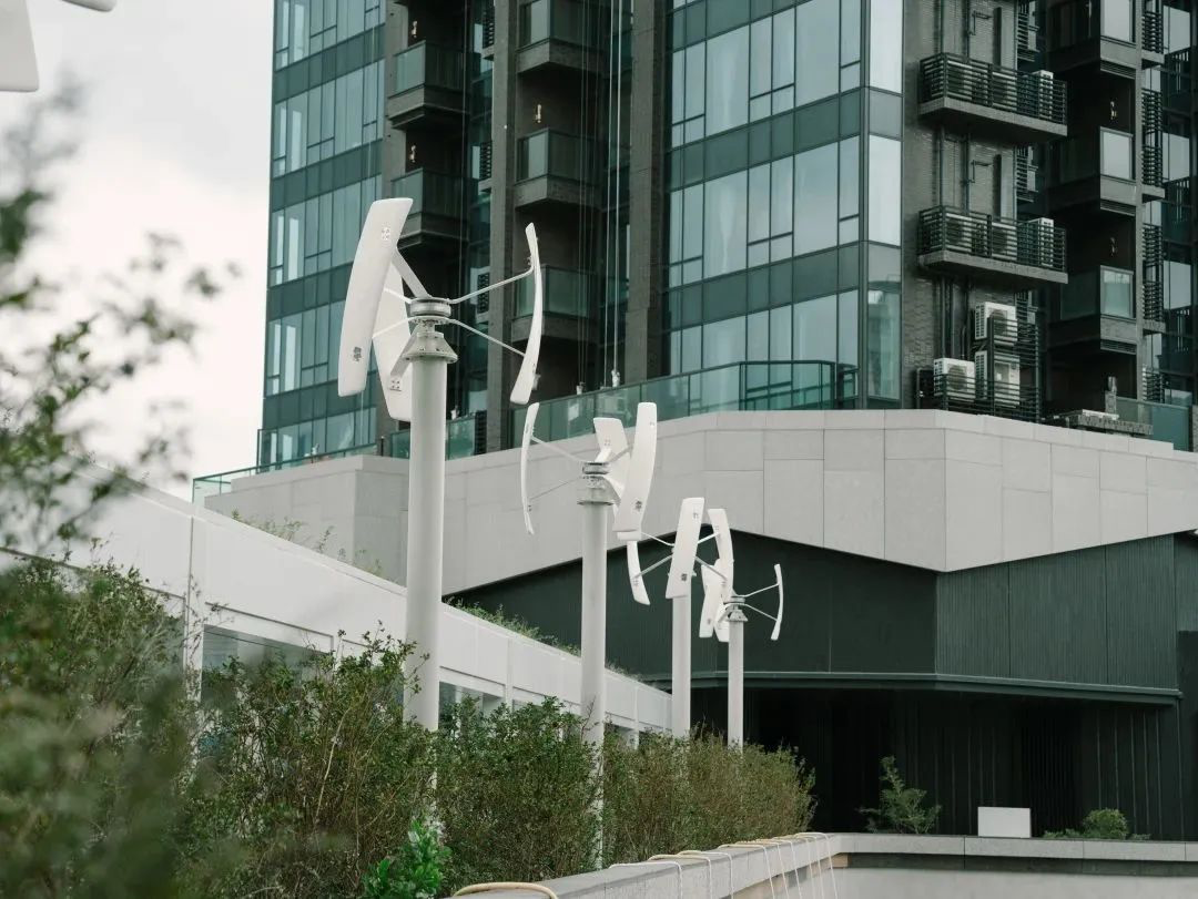 图2 柏傲庄风力、太阳能发电,以及系列节能设施如高效能玻璃幕墙、电梯再生能源系统、绿化墙等(图源郑志刚公众号)