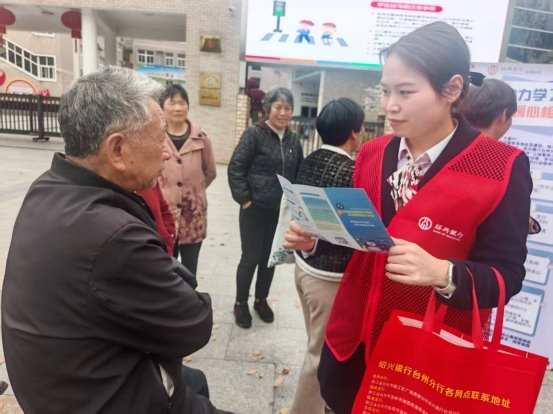 为切实提升老年群体的金融风险防范意识,守护老年人的财产安全,绍兴银行三门支行组织青年志愿者走进心湖社区,开展以“防范金融诈骗,守护幸福晚年”为主题的金融知识宣传活动,用专业力量为老年朋友们筑牢金融安全防线。