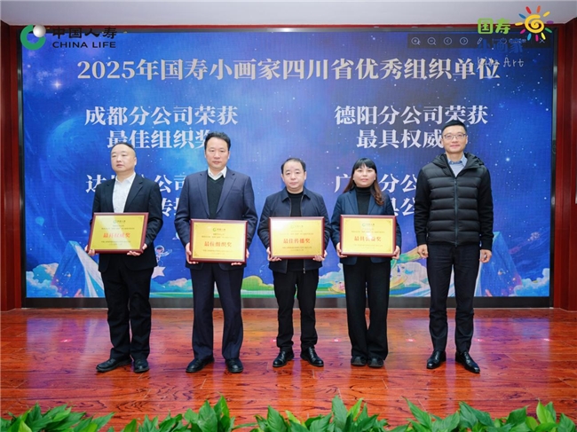 十五载美育深耕,离不开各参与单位的倾力支持。成都、德阳、广元、达州四家分公司凭借卓越的组织效能与创新实践,荣获“2025年国寿小画家优秀组织单位”称号,分别被授予“最佳组织奖”“最具权威奖”“最具公益奖”和“最佳传播奖”。