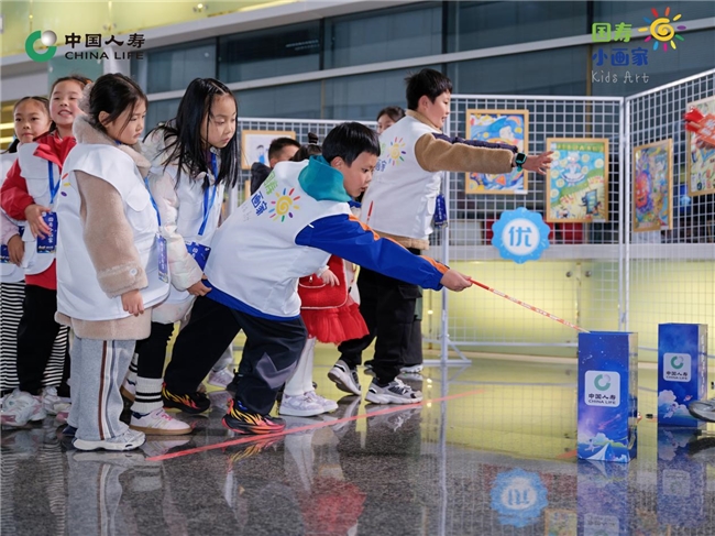 随后,嘉宾与小画家们移步二楼展览区参观。展区通过“十五年历程墙”“主题创作墙”“评审纪实照片”等多维呈现,全面展现活动的专业性与公信力。现场还设有“消保知识投壶”与“国寿小画家专属集章打卡”互动区,寓教于乐,深受孩子们喜爱。
